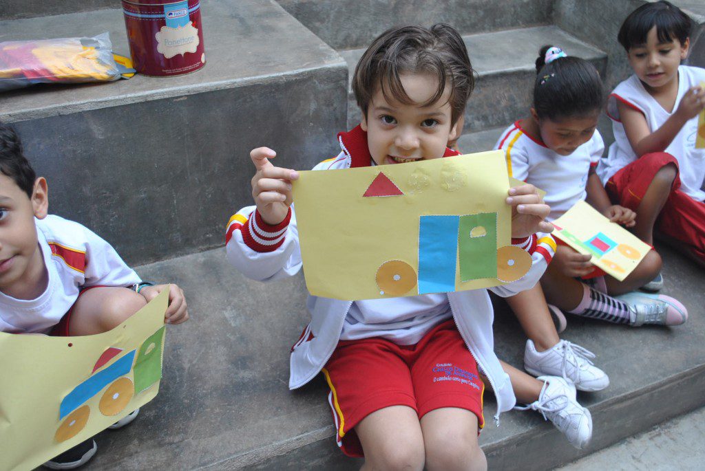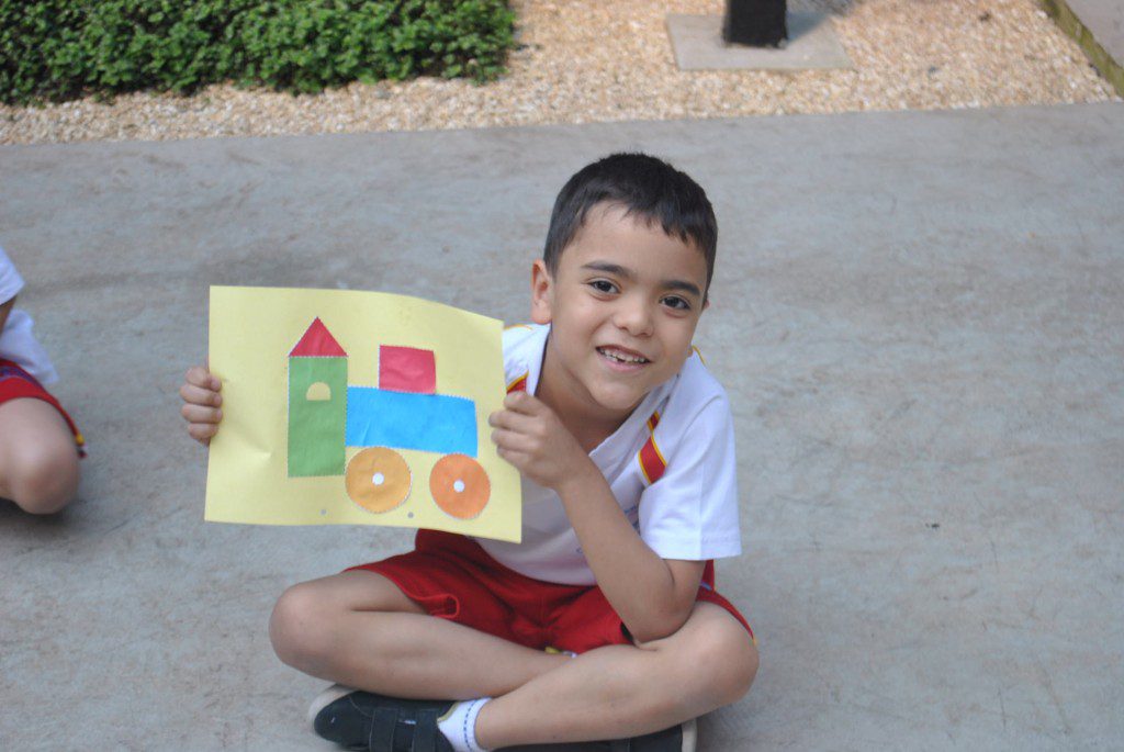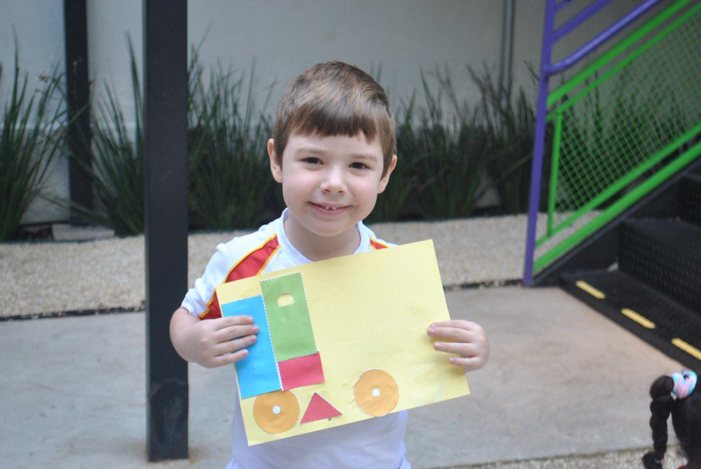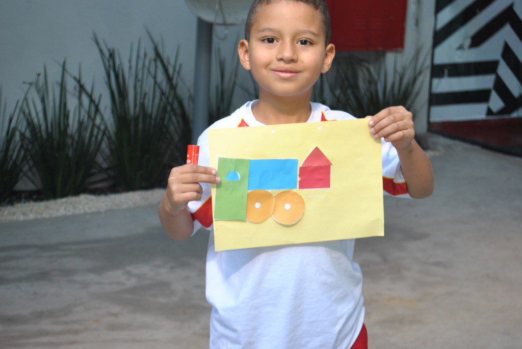 A fim de trazer o lúdico para nossas aulas, a turma do Jardim II B recriou o trem, que foi trabalhado na apostila 5. Essa atividade trouxe conhecimento sobre os diferentes meios de transporte e sobre as figuras geométricas planas.