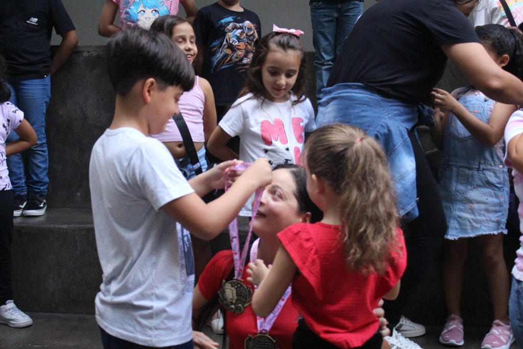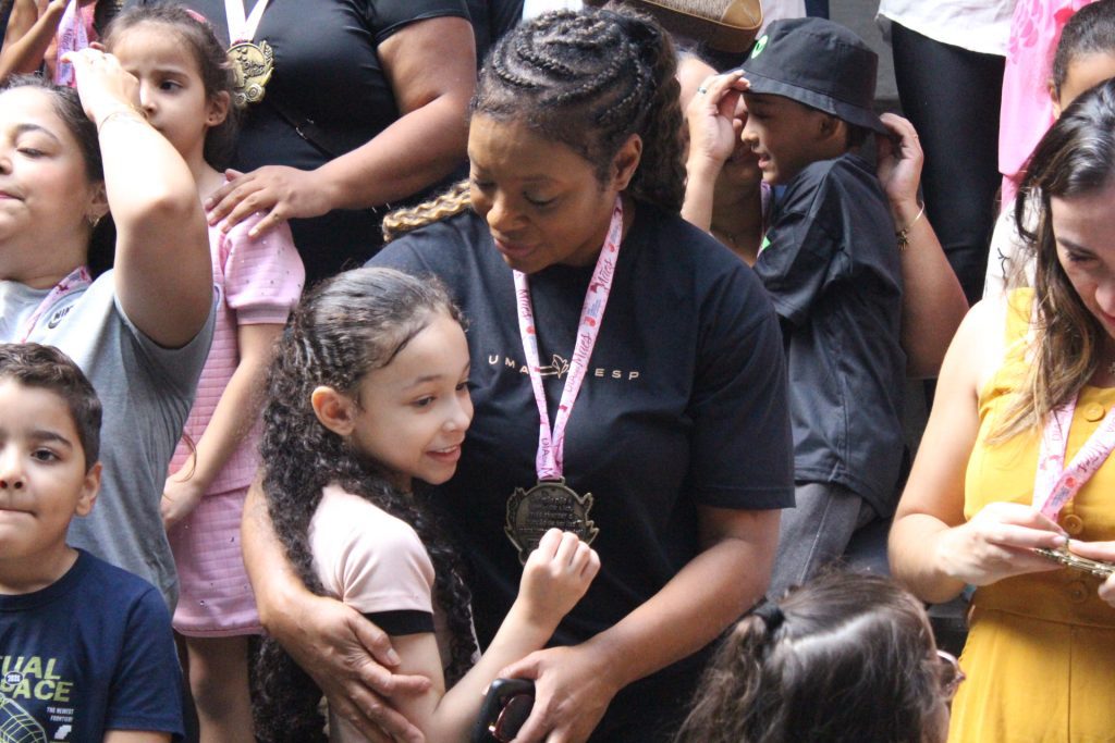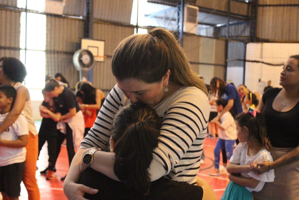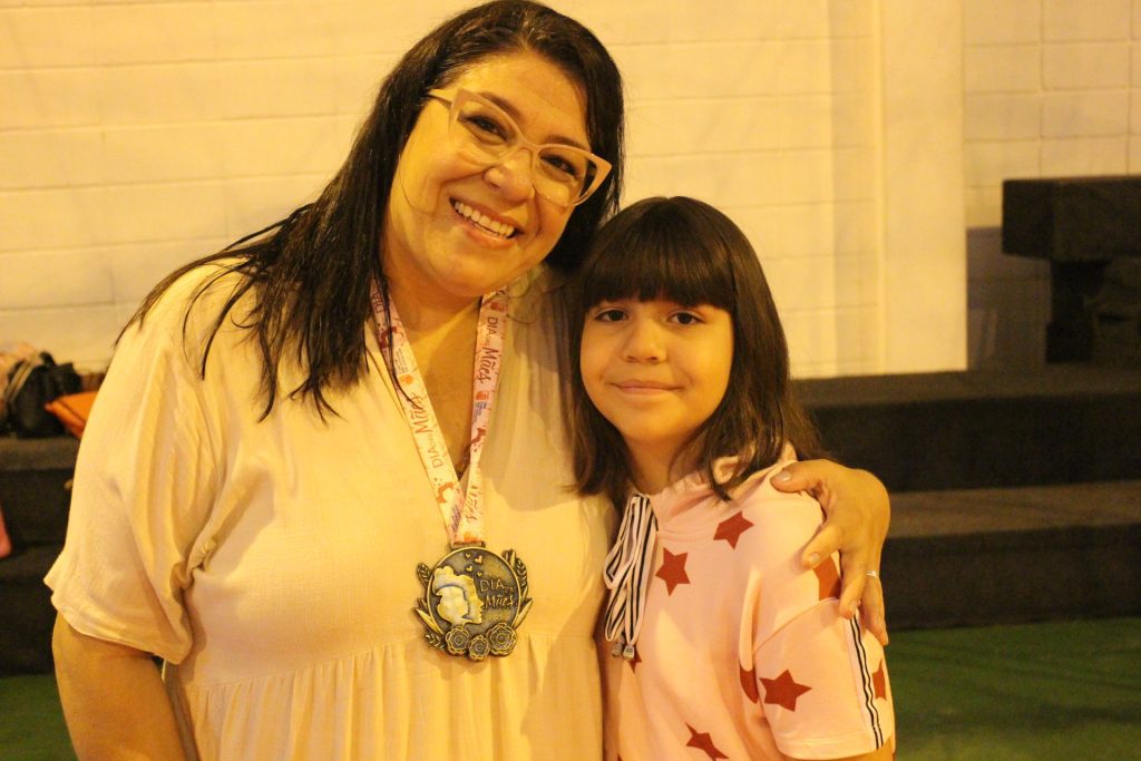 Juntos, se movimentaram ao som de músicas marcantes e contagiantes, celebrando com abraços, sorrisos e olhares repletos de carinho e amor. Para finalizar esse encontro tão significativo, cada mãe recebeu uma medalha especial e uma mensagem cheia de gratidão — um gesto simbólico, mas com um enorme significado.