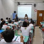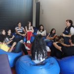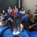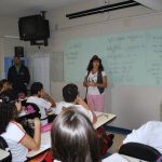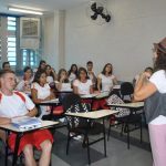 A professora de teatro também se apresentou aos alunos, falou da sua experiência profissional e respondeu algumas perguntas aos interessados no curso.
